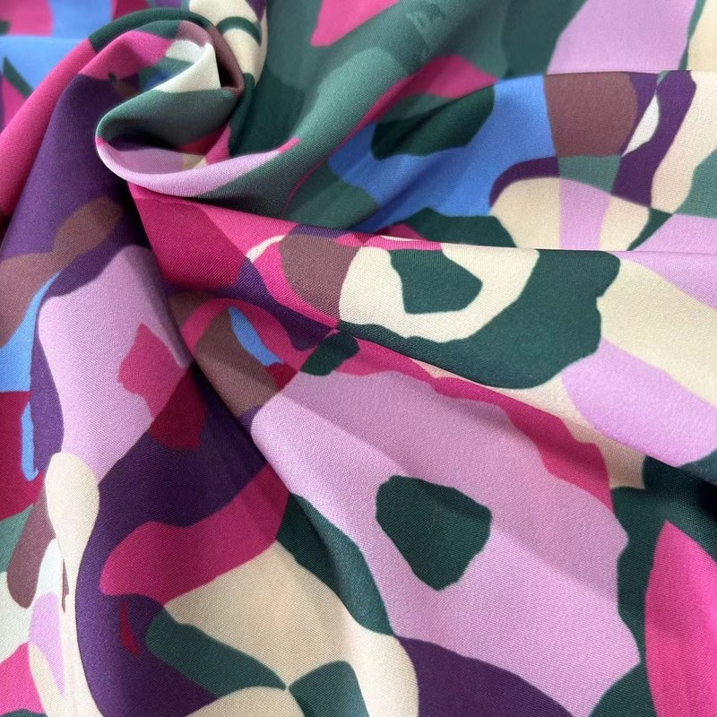 5Thiết kế in ấn độc đáo: Đặc điểm nổi bật của vải này là thiết kế in ấn hình học trừu tượng.Sự kết hợp của màu sắc rực rỡ và hình dạng táo bạo tạo ra một hiệu ứng trực quan hấp dẫn, làm cho nó hoàn hảo để tạo ra quần áo bắt mắt.